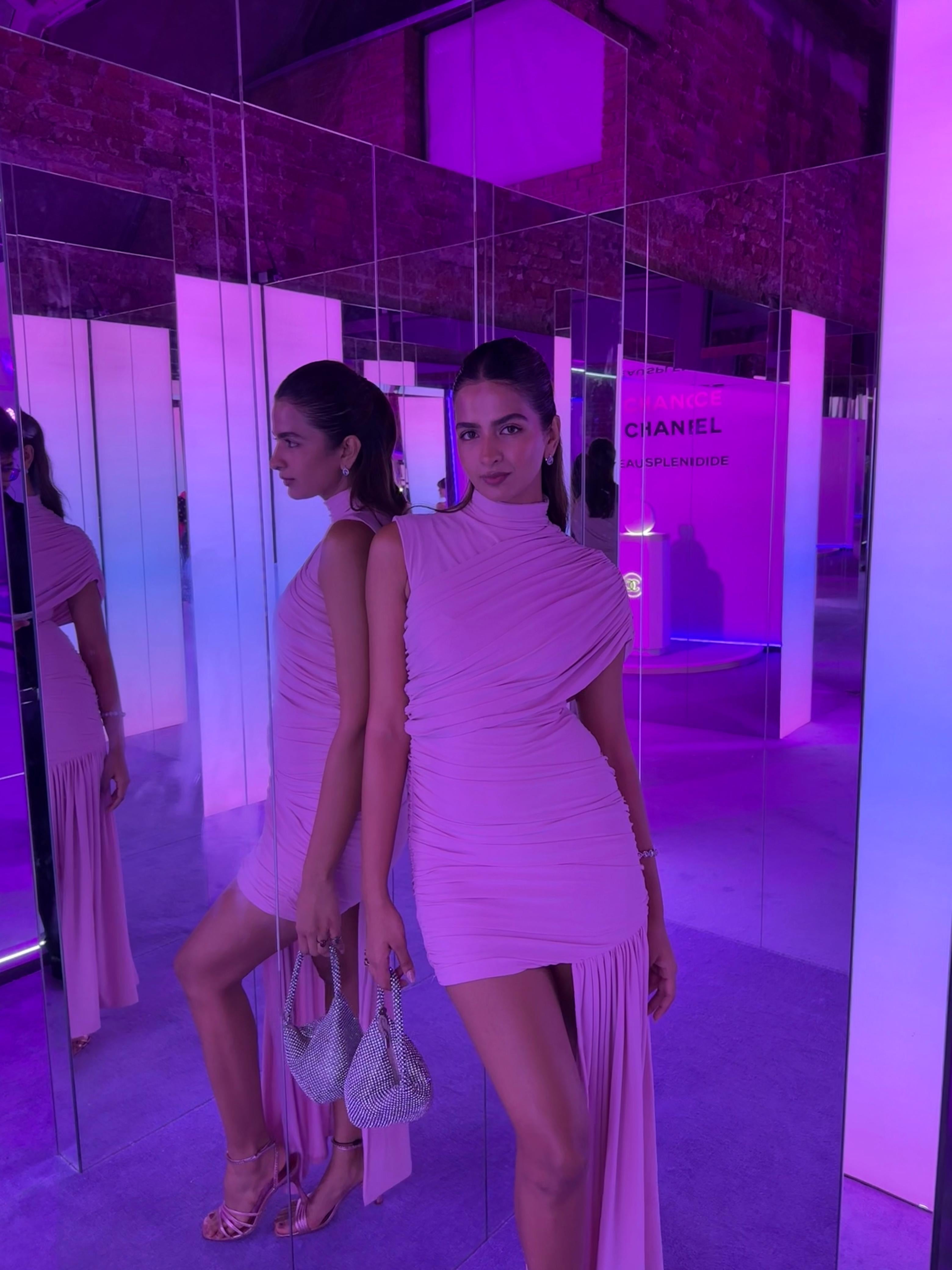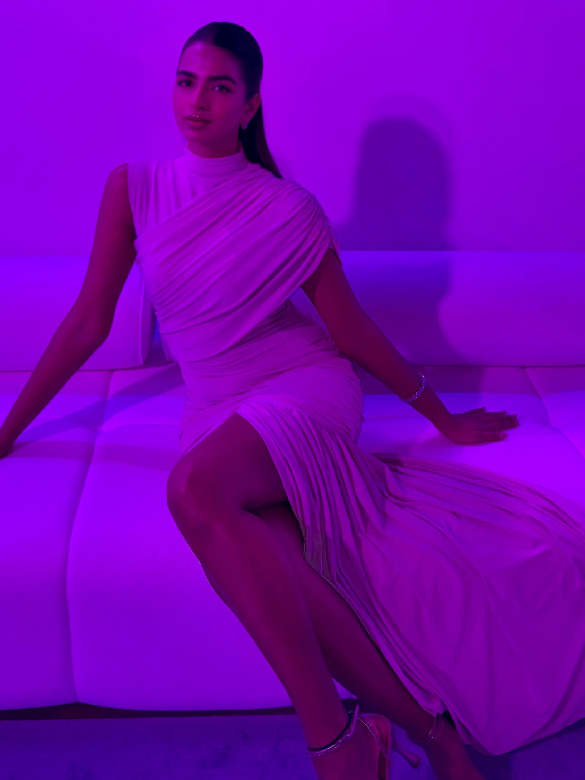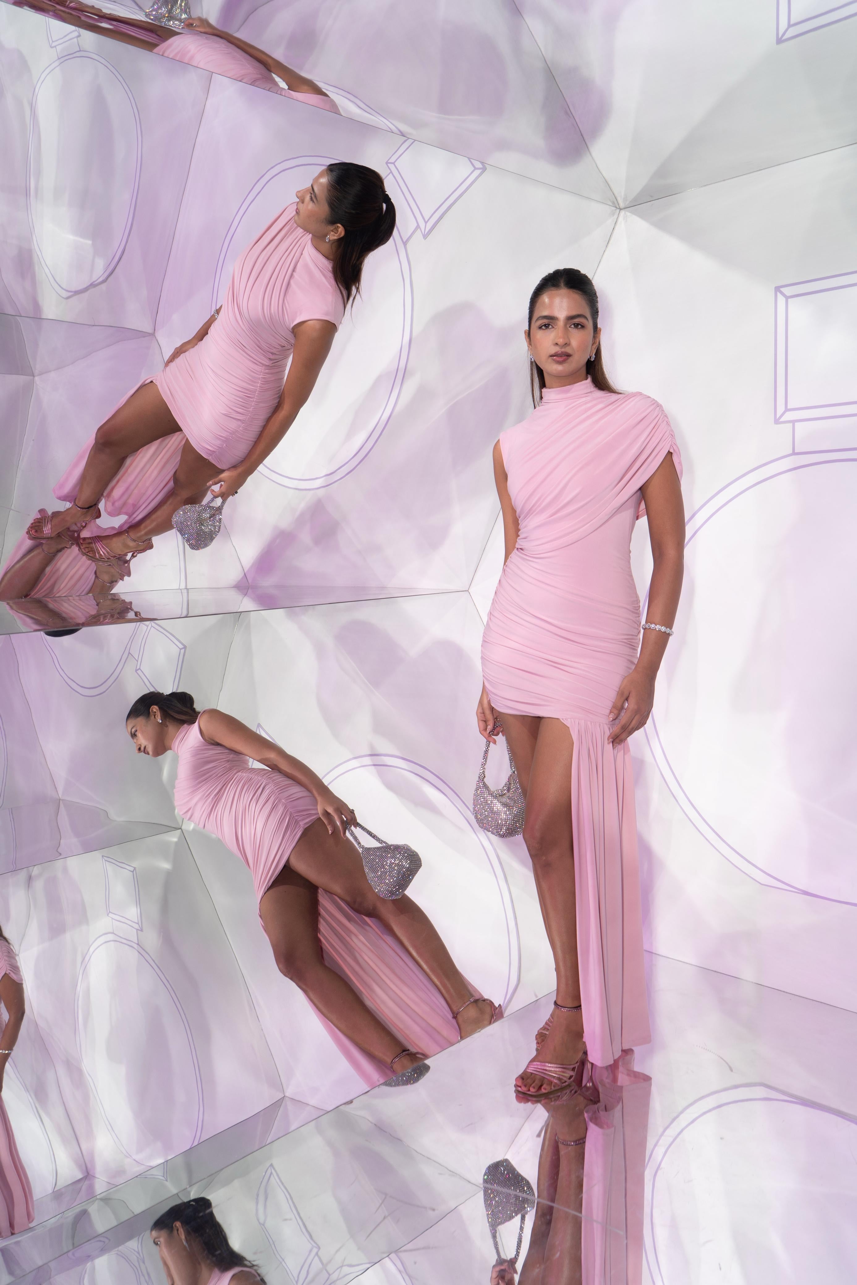 A mini with maxi drama. Crafted in luxe stretch jersey, the Asher Drape Mini features sculpted ruching, an asymmetrical neckline, and a cascading side drape for that effortlessly glamorous silhouette.