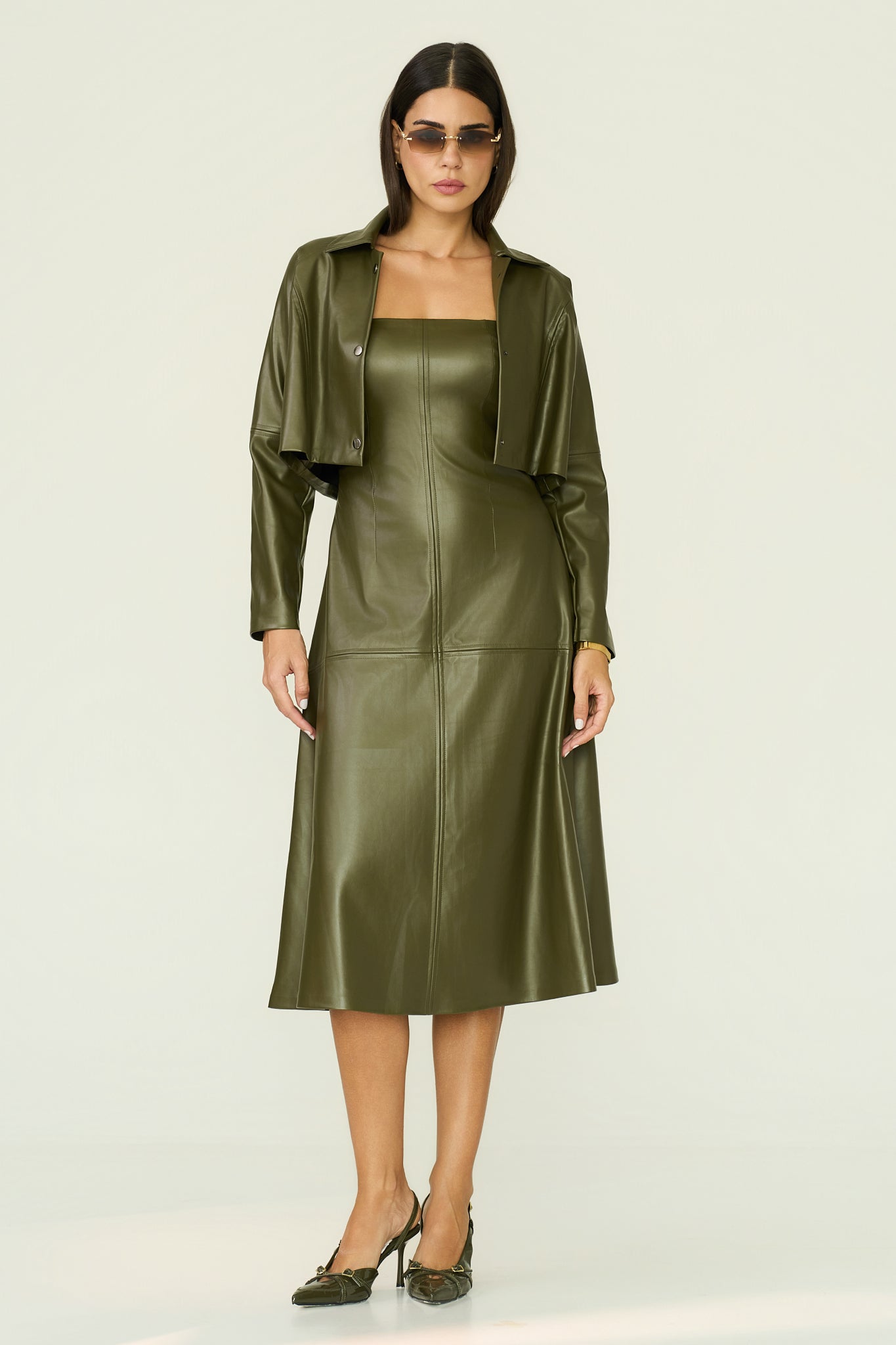 a sharp cropped jacket. that adds definition at shoulder and waist creating a refined modern layered look.